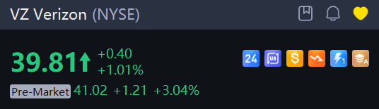 Verizon shares gained 3% in premarket trading.