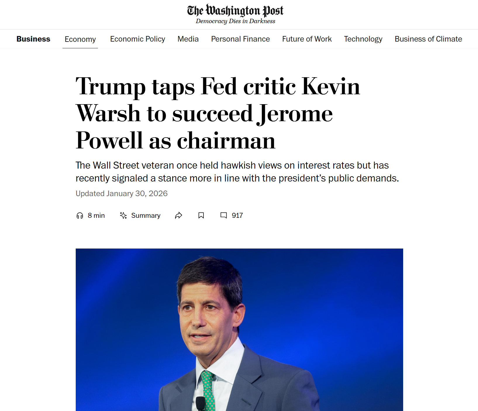 媒体和分析师们迅速找到了一个完美的替罪羊:凯文·沃什(Kevin Warsh)被提名为美联储主席。