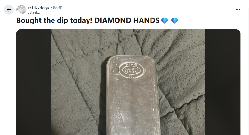 就在几天前,白银还被视作“2026年的GameStop”,是散户抱团对抗华尔街的图腾。Reddit论坛上充斥着“钻石手”(Diamond Hands)的表情包,誓言要将白银推向月球。