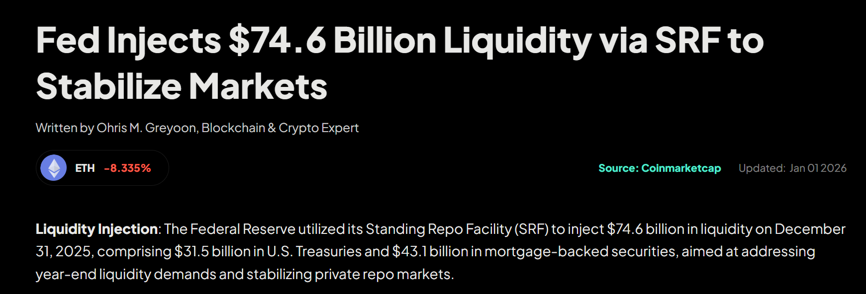 数据显示,12月31日,银行从美联储的紧急贷款窗口(SRF)借入了创纪录的746亿美元。机构有充裕的流动性应对波动,而散户只能被动爆仓。