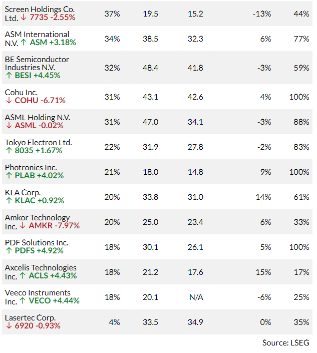 Valuations have risen for many semiconductor-equipment producers - but some are still relatively cheap