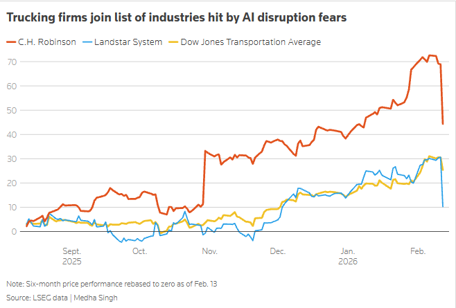Traders probably did not see trucking and logistics firms as an AI target, but the sector plunged sharply on Thursday.