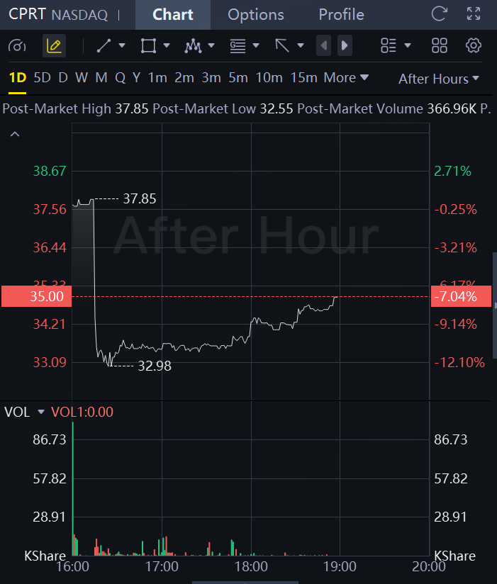 Shares of the company, which primarily provides auction services to sell damaged and total-loss vehicles to used-car dealers and dismantlers, fell 7% in aftermarket trading.