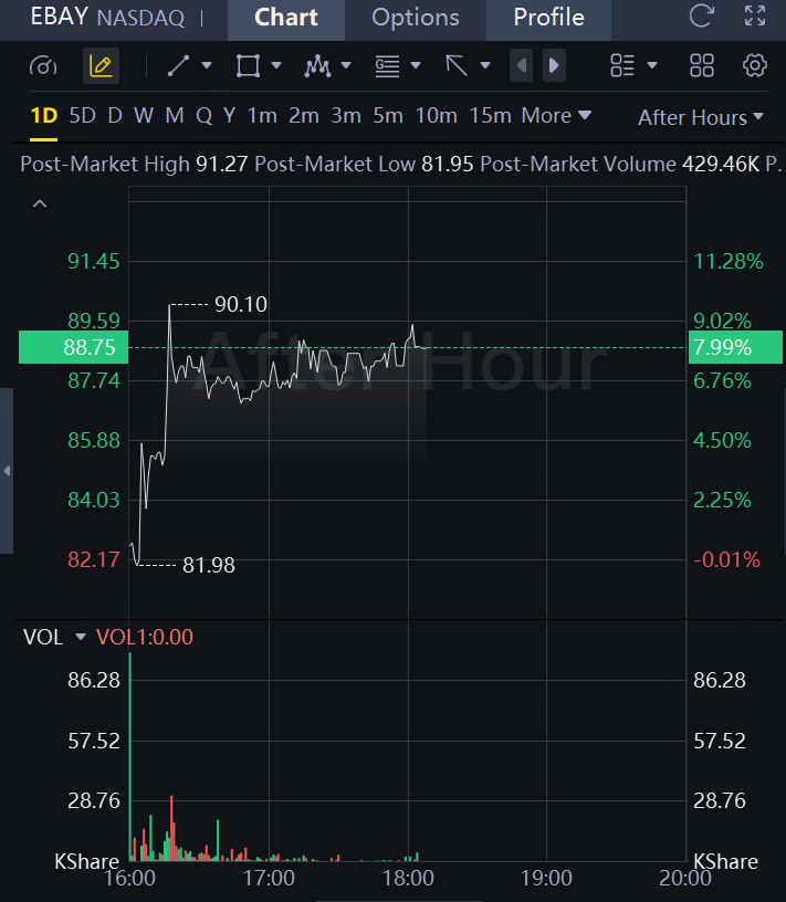 EBay shares were up 8% in after-hours.