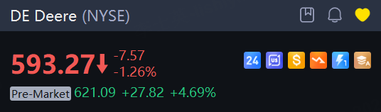Shares of the global farm economy bellwether, rose 4.7% in premarket trading.