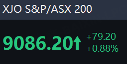 The S&P/ASX 200 climbed 0.88% or 79.20 points to close at 9,086.20, setting a new 100-day high.