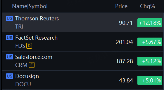 The announcement lifted the shares of Anthropic's partner companies - Thomson Reuters up 12%, FactSet, Salesforce, and DocuSign rose over 5%.