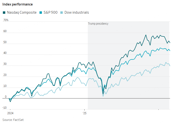 This seemed unlikely on April's "Liberation Day," when new tariffs sent markets into a tailspin. The downturn was brief. The S&P 500 index is up by more than a third from its April low as investors piled into AI-related stocks, and the Dow Jones Industrial Average recently hit 50,000 for the first time. That is good news for the economy: Rising stocks boost household wealth, propping up consumer spending.
