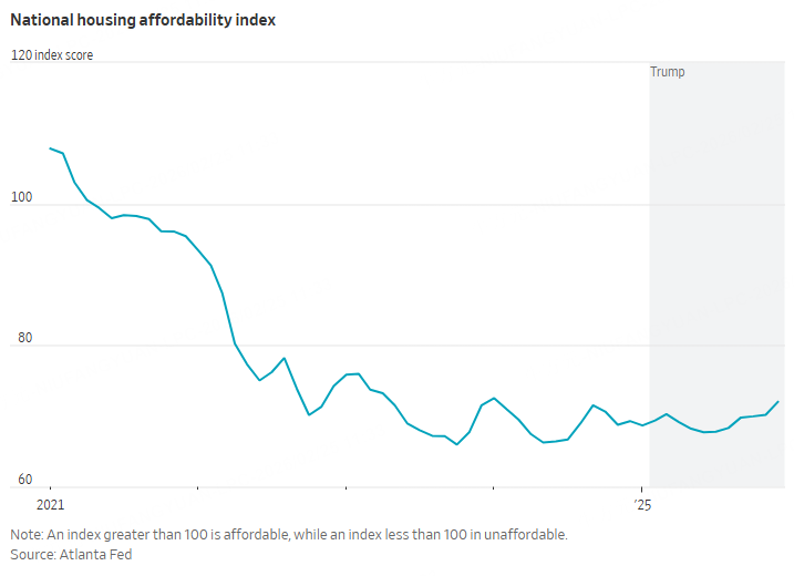 A median-income household looking to buy a median-price home now has to set aside 42% of its monthly earnings for mortgage payments, property taxes and insurance. That is slightly improved from 44% in January 2025 but still a heavy cost.
