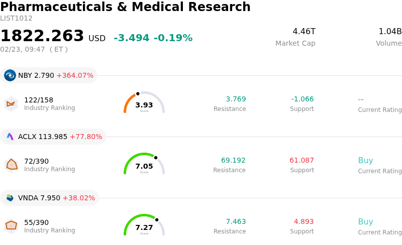 Eli Lilly and Co (LLY) opened up by 3.36%. The Pharmaceuticals & Medical Research industry is down by 0.19%. The company outperformed the industry. Top 3 gainers of the industry: NovaBay Pharmaceuticals Inc (NBY) up 364.07%; Arcellx Inc (ACLX) up 77.80%; Vanda Pharmaceuticals Inc (VNDA) up 38.02%.