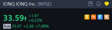 Shares spiked 7% to $33.6 in after-hours trading following the report. Peers D-Wave Quantum and Rigetti Computing were up 2.5% and 0.1%, respectively.