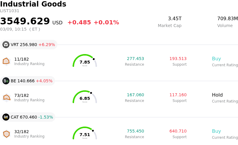 Albany International Corp (AIN) moved down by 4.41%. The Industrial Goods sector is up by 0.01%. The company underperformed the industry. Top 3 stocks by turnover in the sector: Vertiv Holdings Co (VRT) up 6.29%; Bloom Energy Corp (BE) up 4.05%; Caterpillar Inc (CAT) down 1.53%.