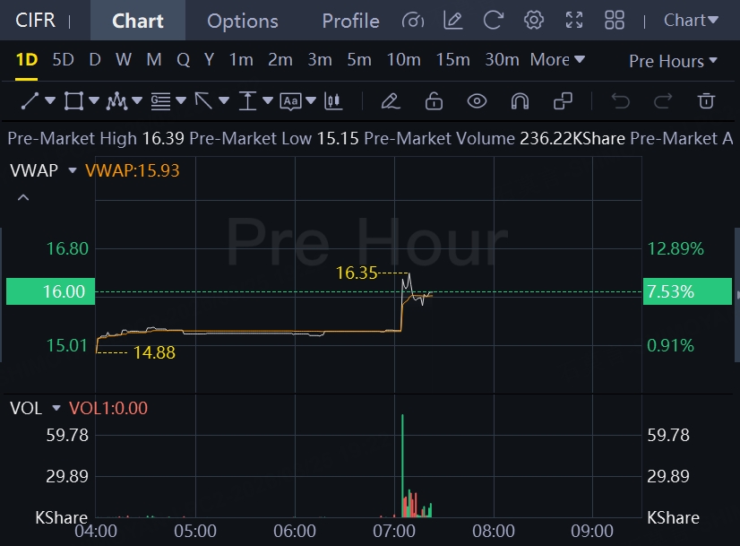 Shares of Cipher Digital jumped over 7% in premarket trading.