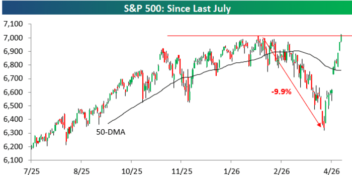 "It's certainly been an unusual rebound," said Paul Hickey, co-founder of Bespoke in an interview with MarketWatch. "You've seen moves of this magnitude before, except you don't necessarily tend to see them this close to the market highs."