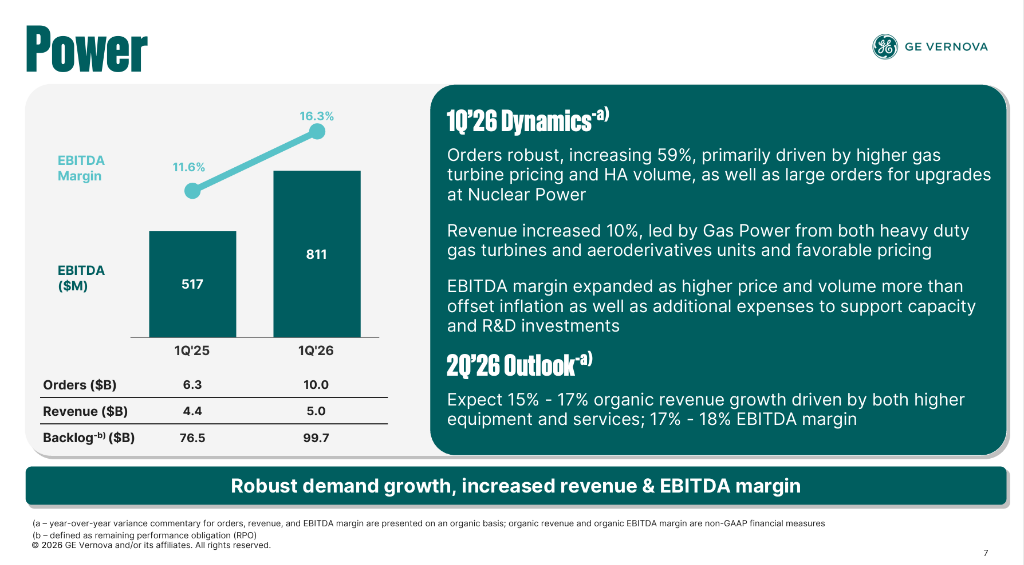 截至季末,Gas Power设备积压订单与槽位预订协议合计从83GW增至100GW,公司预计该数字年底前将至少达到110GW,较此前预期进一步提高。