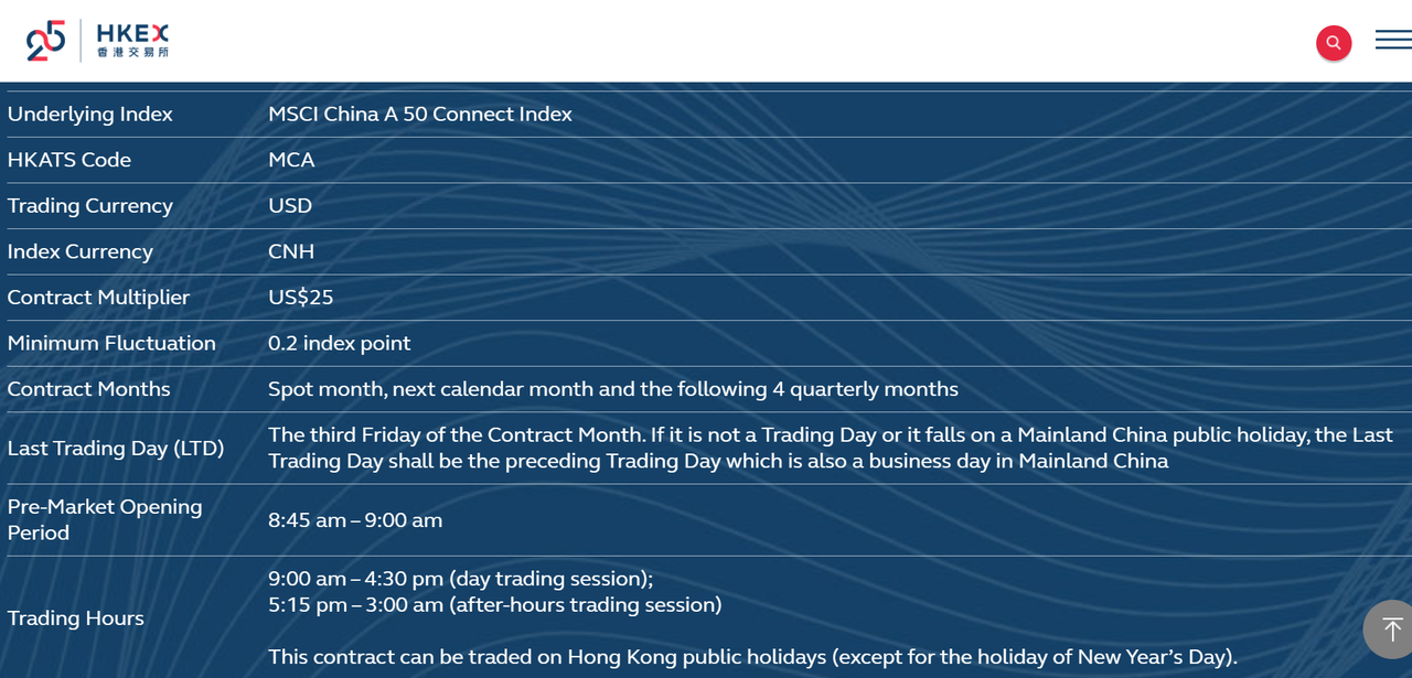 Selections criteria: China-related index futures tradable during Chinese holidays on Tiger Trade.